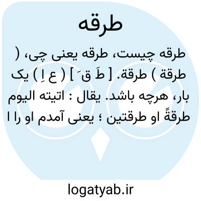 ( طرقة ) طرقة. [ طَ ق َ ] ( ع اِ ) یک بار، هرچه باشد. یقال: اتیته الیوم طرقةً او طرقتین؛ یعنی آمدم او را امروز یک بار یا دو بار. ( منتهی الارب ) ( آنندراج ). || پیشه و صنعت: هذا طرقةالرجل؛ یعنی این پیشه و صنعت اوست. ( منتهی الارب ) ( آنندراج ).