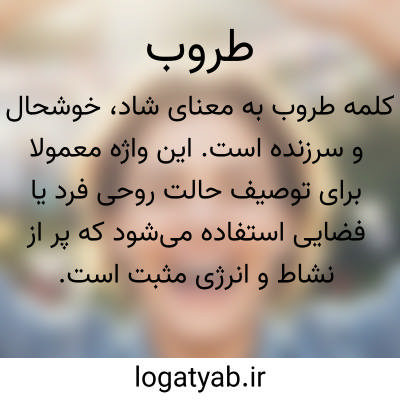 کلمه طروب به معنای شاد، خوشحال و سرزنده است. این واژه معمولاً برای توصیف حالت روحی فرد یا فضایی استفاده می‌شود که پر از نشاط و انرژی مثبت است.