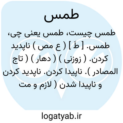 طمس. [ طَ ] ( ع مص ) ناپدید کردن. ( زوزنی ) ( دهار ) ( تاج المصادر ). ناپیدا کردن. ناپدید کردن و ناپیدا شدن ( لازم و متعدی ). ( منتهی الارب ): جبرئیل بادی در روی ایشان دمید طمس شدند، و طمس آن باشد که چشم و دهان و بینی یکی شود و روی ناپدید شود. فطمسنا اعینهم فذوقوا عذابی و نذر. ( قصص الانبیاء ص 56 ). نشان چیزی بردن. ( منتخب اللغات ). ستردن. زدودن: