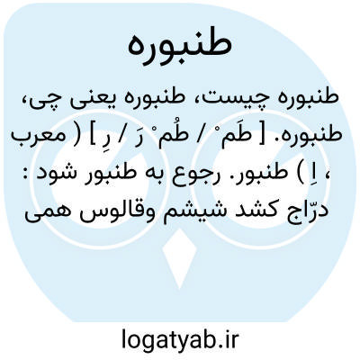 طنبور. یا طنبوره بربری ( بربریه ) قسمی لورای بدوی در فلسطین و مصر معزف چغانه. یا طنبوره از غلاف ( جوال ) بیرون آوردن ( کردن ) فاش کردن راز.