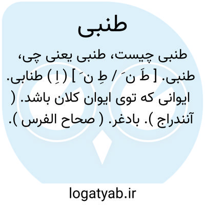 طنبی. [ طَ ن َ / طِ ن َ ] ( اِ ) طنابی. ایوانی که توی ایوان کلان باشد. ( آنندراج ). بادغر. ( صحاح الفرس ). بادغرد. ( صحاح الفرس ):