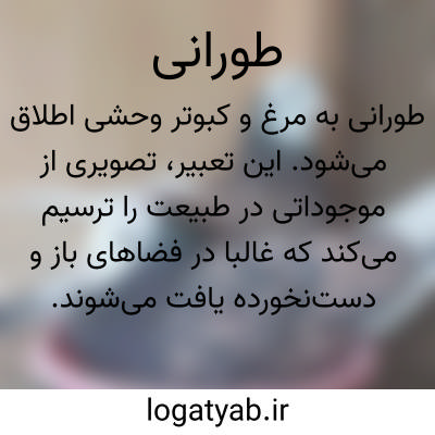 طورانی به مرغ و کبوتر وحشی اطلاق می‌شود. این تعبیر، تصویری از موجوداتی در طبیعت را ترسیم می‌کند که غالباً در فضاهای باز و دست‌نخورده یافت می‌شوند و اشاره‌ای ضمنی به گستردگی و شاید خالی بودن مکانی دارد که این پرندگان در آن حضور دارند. درک این معنا، کلید فهم عبارت دوم است.