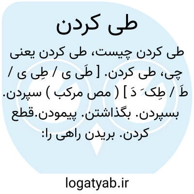 طی کردن. [ طَی ی / طِی ی / طَ / طِک َ دَ ] ( مص مرکب ) سپردن. بسپردن. بگذاشتن. پیمودن.قطع کردن. بریدن راهی را: شبح المفازة؛ طی کرد بیابان را. ( منتهی الارب ). طوی البلاد طیاً؛ طی کرد زمین را. ( منتهی الارب ). || نوردیدن. درنوردیدن. نَوشتن. درنَوشتن. درپیچیدن. لوله کردن: