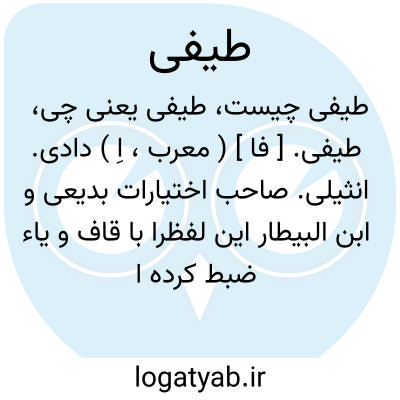 طیفی. [ فا ] ( معرب، اِ ) دادی. انثیلی. صاحب اختیارات بدیعی و ابن البیطار این لفظرا با قاف و یاء ضبط کرده اند، و ظاهراً اگر هم کتابت آن با یاء درست باشد یاء آن در تلفظ به الف تبدیل میشود زیرا در فرانسه نیز این نام را طیفا تلفظ کنند. گفته اند حب بَلسان است و گفته اند نباتیست برگ آن شبیه ببرگ سعد و ساق آن املس و گل آن سفید پیچیده مانند موی و منبت آن نیزارهاو آبهای ایستاده است. ( فهرست مخزن الادویه ). طیقی.