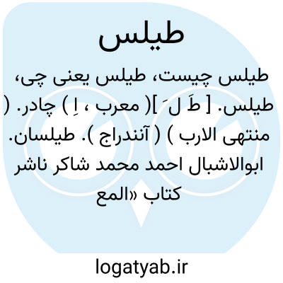 طیلس. [ طَ ل َ ]( معرب، اِ ) چادر. ( منتهی الارب ) ( آنندراج ). طیلسان. ابوالاشبال احمد محمد شاکر ناشر کتاب «المعرب جوالیقی » ذیل کلمه طیلسان گوید: و در طیلسان دو لغت دیگر نیز هست، یکی «الطیلس » و دیگری «الطالسان »، و در معیار این لغت را بدین نحو معنی و تفسیر کرده که: «جامه ای است که بر دوش افکنند»، و نیز گفته که: «جامه ای است که بدن را احاطه میکند و برای پوشیدن میبافند عاری از تفصیل و دوزندگی »، وادی شیر گفته که «آن پوششی است مدور و سبز بدون دامان که تار یا پود آن که از پشم است و خواص از علما و مشایخ آن را پوشند و آن پوشش پارسیان بوده است ». ( المعرب چ مصر مطبعة دار الکتب المصریه 1361هَ. ق. ).