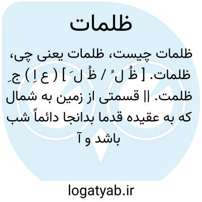 ( اسم ) جمع ظلمت تاریکی ها. توضیح در شعر به ضرورت بسکون لام آید. یا یا ظلمات ثلاث ( ثلثه ) ۱ - سه تاریکی مشیمه بطن ( شکم ) و رحم چنان که در قر آن آمده: یخلقکم فی بطون امهاتکم خاقا من بعد خلق فی ظلمات ثلث ( سوره الزمر آیه ۲. ) ۵ - سه تاریکی که یونس ع را پیش آمد: تاریکی شب تاریکی شکم ماهی تاریکی قعر دریا. ۳ - الف - کدورت طبعی هواهای نفسانی خاصیت حیوانی. ب - کدورت های طول و عرض و عمق عالم سفلی.