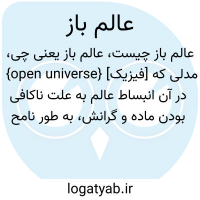 {open universe} [فیزیک] مدلی که در آن انبساط عالم به علت ناکافی بودن ماده و گرانش، به طور نامحدود ادامه می یابد