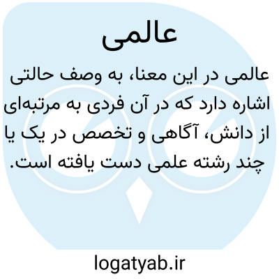 عالمی در این معنا، به وصف حالتی اشاره دارد که در آن فردی به مرتبه‌ای از دانش، آگاهی و تخصص در یک یا چند رشته علمی دست یافته است. این واژه بار معنایی عمیقی دارد و صرفاً به داشتن مدرک تحصیلی یا اطلاعات پراکنده محدود نمی‌شود، بلکه گویای تسلطی ژرف بر مفاهیم، توانایی تحلیل و سنتز دانش، و درک عمیق از پیچیدگی‌های حوزه تخصصی است. عالم بودن، نشان از سال‌ها تلاش، پژوهش، و تعمق در منابع علمی دارد.