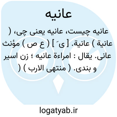 (یِ ) [ ع. عانیة ] (ص. ) ۱ - مؤنث عانی، زن بندی و گرفتار. ۲ - زن (بدان جهت که چون شوی بر او ظلم کند کسی به فریادش نرسد )، ج. عوانی.