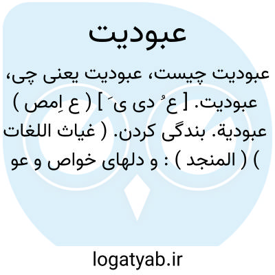 (عُ یَّ ) [ ع. عبودیة ] (مص جع. ) ۱ - بندگی کردن، پرستش کردن. ۲ - طاعت نمودن.