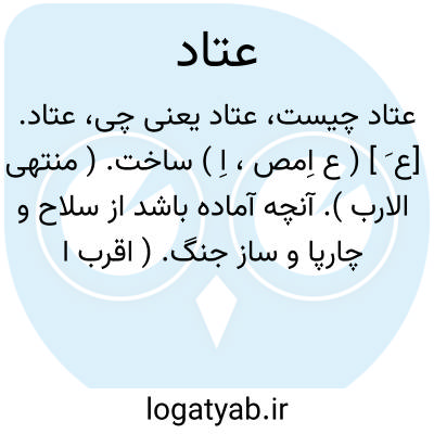 عتاد. [ع َ ] ( ع اِمص، اِ ) ساخت. ( منتهی الارب ). آنچه آماده باشد از سلاح و چارپا و ساز جنگ. ( اقرب الموارد ). || سامان. || آمادگی. || آنچه جهت سفر و جز آن آماده سازند. ( منتهی الارب ).