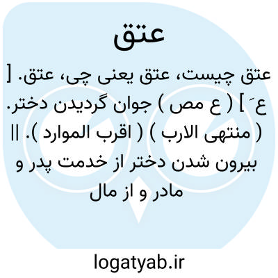عتق. [ ع ُ ] ( ع ص، اِ ) ج ِ عتیق و عاتق. ( اقرب الموارد ).