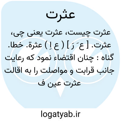 عثرت. [ ع َ رَ ] ( ع اِ ) عثرة. خطا. گناه: چنان اقتضاء نمود که رعایت جانب قرابت و مواصلت را به اقالت عثرت عین فرض داند. ( جهانگشای جوینی ).