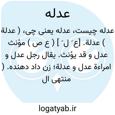 ( عدلة ) عدلة. [ع َ ل َ ] ( ع ص ) مؤنث عدل و قد یؤنث. یقال رجل عدل و امراءة عدل و عدلة؛ زن داد دهنده. ( منتهی الارب ).