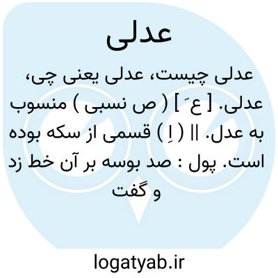 عدلی. [ ع َ ] ( ص نسبی ) منسوب به عدل. || ( اِ ) قسمی از سکه بوده است. پول: