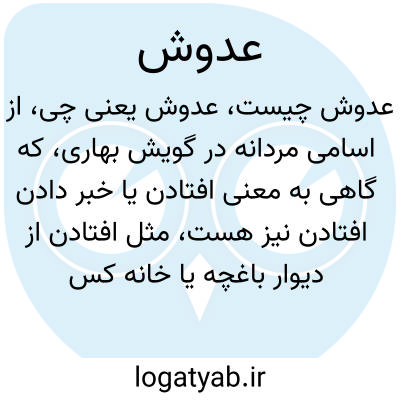 از اسامی مردانه در گویش بهاری، که گاهی به معنی افتادن یا خبر دادن افتادن نیز هست، مثل افتادن از دیوار باغچه یا خانه کسی معمولا بدون اجازه یا به قصد دزدی. عدوش به زبان معیار باستان از دو بخش عَ - دوش تشکیل شده، و دوش در این اصطلاح به معنی افتادن است.