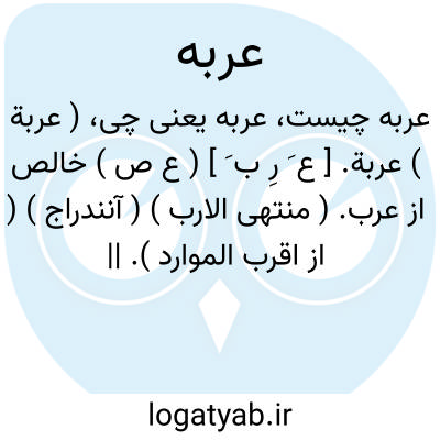 ( عربة ) عربة. [ ع َ رِ ب َ ] ( ع ص ) خالص از عرب. ( منتهی الارب ) ( آنندراج ) ( از اقرب الموارد ). || زن بسیار خندنده. ( منتهی الارب ). عروب از نساء. ( از اقرب الموارد ). || زن حریص بر بازی و لهو. ( منتهی الارب ) ( آنندراج ). || معده تباه شده. || چاه بسیار آب. ( از اقرب الموارد ) ( منتهی الارب ).