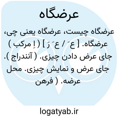 عرضگاه. [ ع َ / ع َ رَ ] ( اِ مرکب ) جای عرض دادن چیزی. ( آنندراج ). جای عرض و نمایش چیزی. محل عرضه. ( فرهنگ فارسی معین ). معرض. نمایشگاه. عرضه گاه. عرضگه. رجوع به عرضگه و عرضه گاه شود. || میدان شمار کردن سپاه. ( غیاث اللغات ) ( آنندراج ) ( فرهنگ فارسی معین ). فراهم آمدنگاه دشمن. ( ناظم الاطباء ). میدان سان. جای سان دادن سپاه. عرضگه. عرضه گاه. لشکرگاه. رجوع به عرضگه و عرضه گاه شود: روز چهارم بابک به عرضگاه بنشست و سپاه گرد آمد. ( ترجمه طبری بلعمی ).