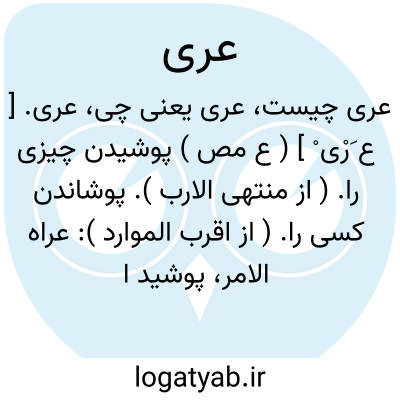 عری. [ ع َرْی ْ ] ( ع مص ) پوشیدن چیزی را. ( از منتهی الارب ). پوشاندن کسی را. ( از اقرب الموارد ): عراه الامر، پوشید او را آن کار. ( ناظم الاطباء ). || آمدن کسی را. ( از منتهی الارب ) ( از ناظم الاطباء ).