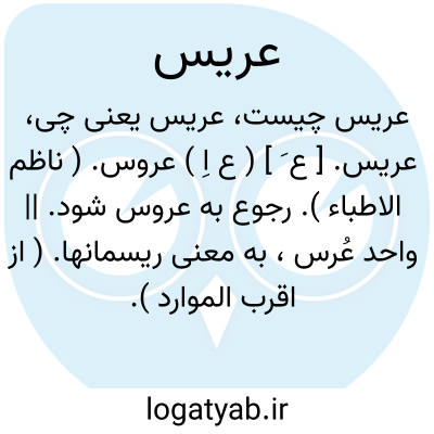 عریس. [ ع َ ] ( ع اِ ) عروس. ( ناظم الاطباء ). رجوع به عروس شود. || واحد عُرس، به معنی ریسمانها. ( از اقرب الموارد ).