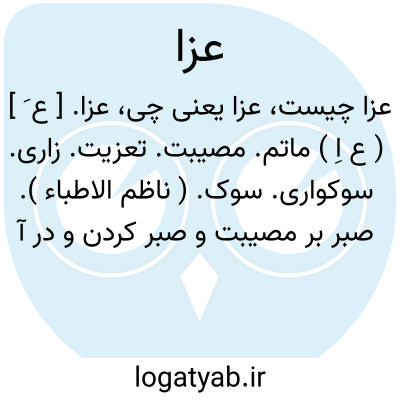 (عَ ) [ ع. عزاء ] ۱ - (مص ل. ) شکیبایی کردن. ۲ - (اِمص. ) صبر و شکیبایی، شکیبایی در مصیبت. ۳ - سوگواری. ۴ - (اِ. ) در فارسی به معنای سوگ، ماتم.