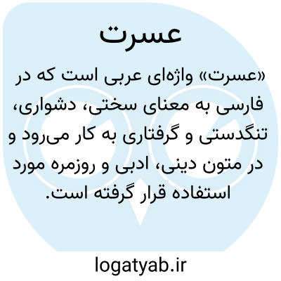«عسرت» واژهای عربی است که در فارسی به معنای سختی، دشواری، تنگدستی و گرفتاری به کار میرود و در متون دینی، ادبی و روزمره مورد استفاده قرار گرفته است. این کلمه بیانگر وضعیتی است که انسان در آن با فشار، محدودیت یا مشکلات مالی و زندگی روبرو میشود و تحمل آن دشوار است. در قرآن کریم، واژه «عسرت» به صورت مفهومی به کار رفته و معمولاً با «یسر» (آسانی) در تضاد قرار میگیرد تا نشان دهد پس از سختی، آسانی و گشایش نیز وجود دارد. عسرت میتواند شامل فشارهای مادی، روحی، جسمی یا اجتماعی باشد و مفهومی گسترده دارد که محدود به یک نوع مشکل نیست. این واژه در ادبیات فارسی نیز کاربرد دارد و شاعران و نویسندگان از آن برای توصیف سختیها و مشکلات زندگی انسان استفاده کردهاند. بنابراین، «عسرت» به معنای سختی، تنگدستی و دشواری است و بیانگر وضعیت فشارآور و مشکلآفرین در زندگی انسان میباشد، که تحمل آن نیازمند صبر و مقاومت است.
