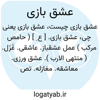 عشق بازی. [ ع ِ ] ( حامص مرکب ) عمل عشقباز. عاشقی. غَزَل. ( منتهی الارب ). عشق ورزی. معاشقه. مغازله. تصابی. مهرورزی: