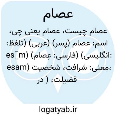 عصام. [ ع ِ ] ( ع اِ ) بند مشک و دوال که به وی بردارند مشک را. ( منتهی الارب ) ( از اقرب الموارد ). || رسن محمل که بر تصدیر وسینه بند و تنگ شتر بندند تا سپس نرود. ( از منتهی الارب ). شکال، در محمل. ( از اقرب الموارد ). || رسن دلو و مشک و آبدستان که بدان بندند. || دسته آوند که بدان آویزند. ( منتهی الارب ). عروه و دسته ظرف که بوسیله آن آویخته شود. ( از اقرب الموارد ). || سرمه. ( منتهی الارب ). کحل. ( اقرب الموارد ). || جای باریک یک طرف دنب. ( منتهی الارب ). قسمت باریک انتهای دم. ( از اقرب الموارد ). || مجازاً، عهد و پیمان. ( از اقرب الموارد ). ج، أعصِمة، عُصم، عِصام، که لفظ اخیر با مفردش یکسان است. ( از منتهی الارب ) ( از اقرب الموارد ). || زره تابان و نرم. || معصم و موضعدستبند از ساعد. ( ناظم الاطباء ). || ج ِ عِصام بر لفظ مفرد. ( منتهی الارب ) ( از اقرب الموارد ).