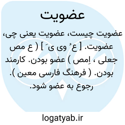 عضویت. [ ع ُ وی ی َ ] ( ع مص جعلی، اِمص ) عضو بودن. کارمند بودن. ( فرهنگ فارسی معین ). رجوع به عضو شود.