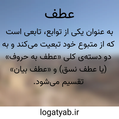 عطف. [ ع َ ] ( ع مص ) میل کردن. ( از منتهی الارب ) ( از اقرب الموارد ). || مهربانی کردن بر کسی. ( از منتهی الارب ) ( المصادر زوزنی ) ( تاج المصادر بیهقی ) ( دهار ) ( از اقرب الموارد ). || دوتا کردن. ( از منتهی الارب ). به دو درآوردن. ( المصادر زوزنی ) ( دهار ) تاکردن. ( از اقرب الموارد ). || حمله نمودن برکسی و بازگشتن. ( از منتهی الارب ). حمله کردن. ( المصادر زوزنی ) ( از تاج المصادر بیهقی ). || خم دادن چوب. ( از منتهی الارب ). برگردانیدن چوب و جز آن. ( تاج المصادر بیهقی ). برگردانیدن. ( دهار ). بگردانیدن.( المصادر زوزنی ). || پیچیدن جامه. ( از منتهی الارب ). پیچیدن. ( غیاث اللغات ). || بازگشتن و منصرف شدن. ( از اقرب الموارد ). برگردیدن. ( تاج المصادر بیهقی ) ( دهار ). || بگردانیدن. ( المصادر زوزنی ). || بازداشتن و دور کردن ازحاجت، گویند: عطف فلاناً عن حاجته. ( از اقرب الموارد ). || برگرداندن سر شتر را بسوی خود. ( از اقرب الموارد ). || مهربان و رحیم کردن: عطف اﷲ بقلب السلطان علی رعیته. ( از اقرب الموارد ). || در اصطلاح نحو سخن را بر سخن بازگردانیدن،اولی را معطوف علیه و دوم را معطوف گویند. ( از منتهی الارب ). کلمه ای را تابع کلمه دیگر کردن بوسیله حروف عطف. ( از اقرب الموارد ). سخنی را به سخنی دیگر بازگردانیدن. ( یادداشت مرحوم دهخدا ). سخن را با سخن بازگردانیدن. ( آنندراج ). تالی قرار دادن کلمه را بر کلمه دیگر بوسیله حرف عطف. ( از اقرب الموارد ). هر گاه کلمه یا جمله ای به ماقبل خود ربط داده شود آن را عطف گویند. و این عطف چون بوسیله یکی از حروف دهگانه عطف صورت گیرد آن را عطف نسق نیز نامند زیرا با متبوع خود بر یک نسق و روش است ماقبل حرف عطف را معطوف علیه و مابعد حرف عطف را معطوف نامند. و معطوف تابعی است که در حکم معطوف علیه است و آن ممکن است عطف لاحق بر سابق باشد مانند: و لقد أرسلنا نوحا و ابراهیم، و یا عطف سابق بر لاحق است مانند: و کذلک یوحی الیک والذین من قبلک، و یا عطف مصاحب بر مصاحب است مانند: فنجّیناه و أصحاب السفینة. توضیح اینکه عطف کردن بر ضمیر منفصل و ضمیر متصل منصوب، مانند سایر اسماء ظاهر، جایز است، ولی عطف کردن بر ضمیر متصل مرفوع یا ضمیر مستتر جایز نیست جز اینکه میان آنها فاصله اندازند. این فاصله ممکن است ضمیر منفصل باشد چون: کنتم انتم و آباؤکم و «اسکن انت و زوجک الجنة» و یا غیر ضمیر باشد مانند: «ما أشرکنا و لا آباؤنا» ( از کشاف اصطلاحات الفنون و فرهنگ علوم نقلی، به نقل از مغنی و هدایة و سیوطی و مختصر المعانی ). و رجوع به حروف عطف در ترکیبات عطف شود.