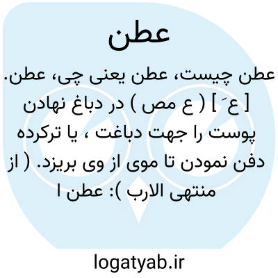 عطن. [ ع َ ] ( ع مص ) در دباغ نهادن پوست را جهت دباغت، یا ترکرده دفن نمودن تا موی از وی بریزد. ( از منتهی الارب ): عطن الجلدَ؛ پوست را در غلقة، که گیاهی است، و یا در سرگین و نمک انداخت و روی آن را پوشاند تا پشم آن بریزد و نرم شود، سپس آن را در دباغ نهاد و چنین پوستی را عطین و معطون گویند. ( از اقرب الموارد ).
