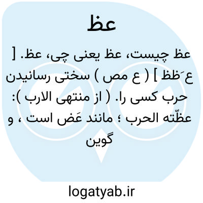 عظ. [ ع َظظ ] ( ع مص ) سختی رسانیدن حرب کسی را. ( از منتهی الارب ): عظّته الحرب؛ مانند عَض است، و گویند عض، در مورد گزیدن و زیان رساندن به دندان است و عظ در غیردندان. ( از اقرب الموارد ). || بر زمین چسفانیدن کسی را. ( از منتهی الارب ): عظّ فلاناًبالارض؛ او را بر زمین چسباند. ( از اقرب الموارد ).