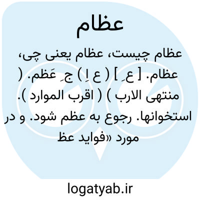 عظام. [ ع ِ ] ( ع اِ ) ج ِ عَظم. ( منتهی الارب ) ( اقرب الموارد ). استخوانها. رجوع به عظم شود. و در مورد «فواید عظام » در عقیده پزشکی قدیم، رجوع به اختیارات بدیعی شود: انظر الی العظام کیف ننشزها ثم نکسوها لحماً. ( قرآن 259/2 )؛ و استخوانها را بنگرکه چگونه آنها را از جای برداریم سپس با گوشت می پوشانیم. و قالوا أاًذاکنا عظاما و رفاتا أاًنا لمبعوثون خلقا جدیدا. ( قرآن 49/17 و 98 ). و گفتند آیا اگر استخوان و ریزه ریزه باشیم به صورت آفرینشی تازه برانگیخته خواهیم بود. فخلقنا المضغة عظاما فکسونا العظام لحما. ( قرآن 14/23 ). پس «مضغه » را استخوانهایی گرداندیم و استخوانها را با گوشت پوشانیدیم. أاًذاکنا عظاما نخرة. ( قرآن 11/79 )؛ آیا اگر استخوانهای پوسیده ای بودیم. أاًذامتنا و کنا تُراباً و عظاما أاًنا لمبعوثون. ( قرآن 47/56 ). آیا اگر بمیریم و استخوانهایی شویم، آیا باز هم برانگیخته خواهیم بود.