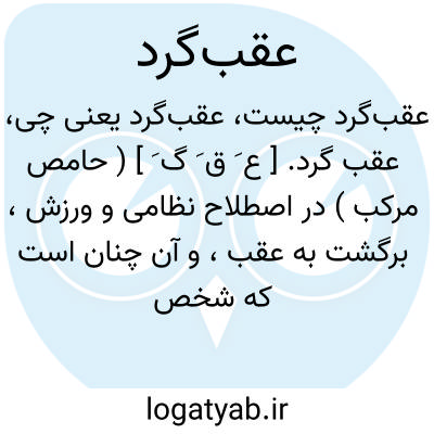 عقب گرد. [ ع َ ق َ گ َ ] ( حامص مرکب ) در اصطلاح نظامی و ورزش، برگشت به عقب، و آن چنان است که شخص روی پنجه پای چپ نیم دایره ای به سمت چپ بچرخد سپس پای راست را به پای چپ بپیوندد. ( فرهنگ فارسی معین ). || بازگشت به قهقرا. || عقب افتادن. ( فرهنگ فارسی معین ).