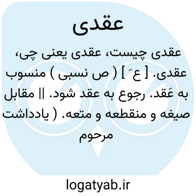 عقدی. [ ع ُ ] ( ص نسبی ) منسوب به عقدة که آن نام زنی است. و طرماح بن جهم طائی عقدی شاعر بدین نسبت شهرت دارد. و نیز بنی عمروبن سنبس بن معاویةبن جرول بن ثعل بن عمروبن غوث بن طی ٔ، چون مادرشان عقدة دختر مغتربن بولان بوده است بدین نسبت شهرت دارند. ( از اللباب فی تهذیب الانساب ). رجوع به عقدة ( اِخ ) شود.