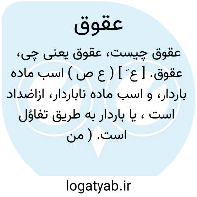 عقوق. [ ع َ ] ( ع ص ) اسب ماده باردار، و اسب ماده ناباردار، ازاضداد است، یا باردار به طریق تفاؤل است. ( منتهی الارب ). باردار از اسبان، یا حائل و غیر باردار، و گویند آن را بر تفاؤل به اسب غیر باردار گویند چنانکه مار گزیده را سلیم نامند. ( از اقرب الموارد ). مادیان آبستن و ناآبستن. ( دهار ). ج، عُقُق، و جج، عِقاق. ( اقرب الموارد ) ( منتهی الارب ) ( دهار ). و از آن جمله است مثل «طلب الابلق العقوق » یعنی طلب کرد محال را. ( از منتهی الارب ) ( از اقرب الموارد ). || نوی العقوق؛ خسته خرمای نرم که علف شتران است. ( منتهی الارب ).هسته ای است نرم که جویدن آن آسان است که پیرزنان آن را میخورند یا میجوند، و ماده شتر آن را میخورد لذابه «عقوق » اضافه شده است. و آن از کلام اهل بصره است و اعراب بادیه آن را نشناسند. ( از اقرب الموارد ).