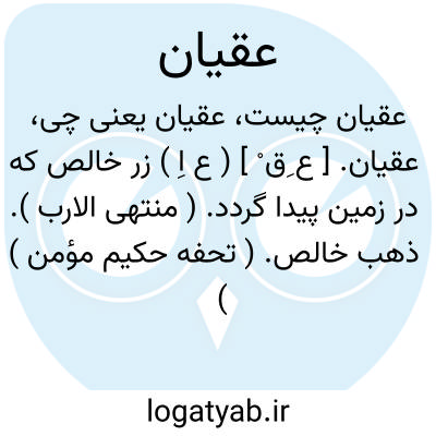 عقیان. [ ع ِق ْ ] ( ع اِ ) زر خالص که در زمین پیدا گردد. ( منتهی الارب ). ذهب خالص. ( تحفه حکیم مؤمن ) ( مخزن الادویه ). زر که از زمین برآید. ( دهار ). زر خالص، و گویند آن زری است که در زمین باشد نه آنچه از سنگ استخراج شود. ( از اقرب الموارد ). زر ردیا. سام. تبر. عسجد. عین. نضر: