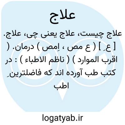 (عِ یا عَ ) [ ع. ] ۱ - (مص م. ) درمان کردن. ۲ - (اِمص. ) درمان، معالجه. ۳ - (اِ. ) چاره.