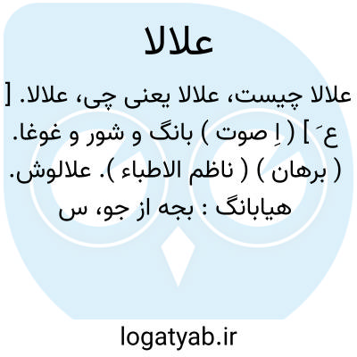 ستر اﷲ علینا، چه علالاست در این کو.مولوی.- علالای سگ؛ پارس کردن او. بانگ او: