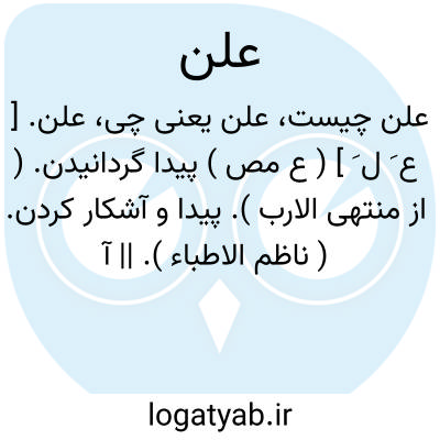 علن. [ ع َ ل َ ] ( از ع،ص، اِ ) مأخوذ از عربی، با تغییر حرکت لام از کسره به فتحه. آشکارا. ضد سرّ. ( غیاث اللغات و آنندراج از صراح و شرح نصاب ). و رجوع به عَلِن شود: