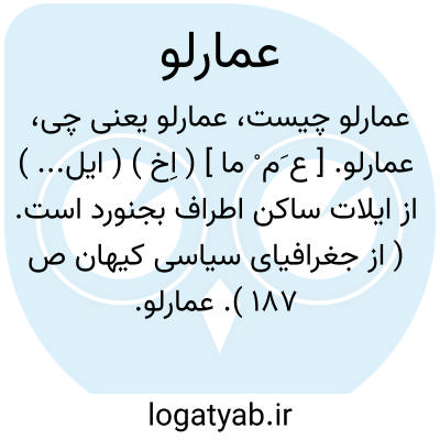 عمارلو. [ ع َم ْ ما ] ( اِخ ) ( ایل... ) از ایلات ساکن اطراف بجنورد است. ( از جغرافیای سیاسی کیهان ص 187 ).