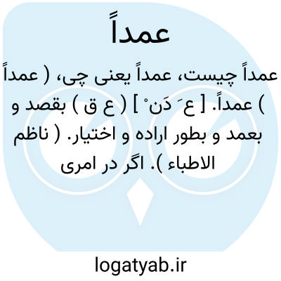 ( عمداً ) (عَ مْ دَ نْ ) [ ع. ] (ق. ) از روی قصد و نیت.