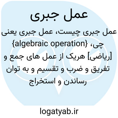 {algebraic operation} [ریاضی] هریک از عمل های جمع و تفریق و ضرب و تقسیم و به توان رساندن و استخراج ریشه