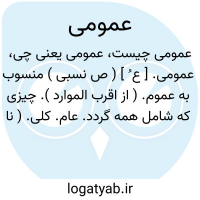 ( صفت ) منسوب به عموم آنچه که متعلق و مربوط به عموم باشد همگانی: تعلیمات عمومی.