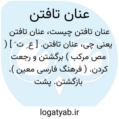 عنان تافتن. [ ع ِ ت َ ] ( مص مرکب ) برگشتن و رجعت کردن. ( فرهنگ فارسی معین ). بازگشتن. پشت بدادن: