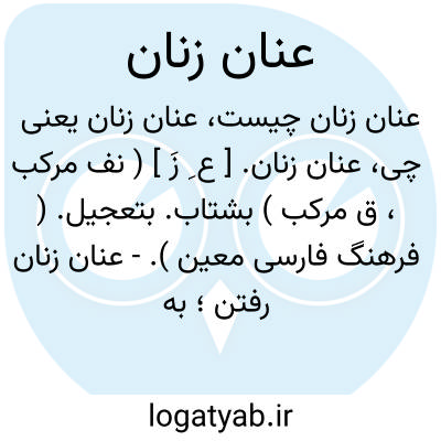 عنان زنان. [ ع ِ زَ ] ( نف مرکب، ق مرکب ) بشتاب. بتعجیل. ( فرهنگ فارسی معین ).