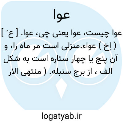 عوا. [ ع َوْ وا ] ( اِخ ) عواء. نام منزلی است از منازل قمر. رجوع به عَوّاء شود: