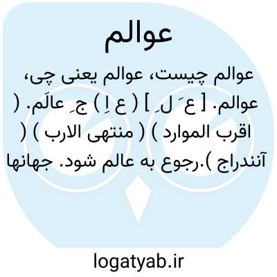 جمع عالم ۱ - جهانها. ۲ - حالات مخصوص کیفیات مخصوص. جمع: عوالمات. یا عوالم اربعه. ۱ - عالم های لاهوت ملکوت جبروت و ملک و ناسوت است. ۲ - عالم انوار مجرده و انوار مدبره و صور معلقه و عالم خلق و ماده برزخ. یا عوالم خمسه. عالم های علم عین جبروت ملکوت و خلق. یا عوالم عالی ( عالیه ). عالم مجردات طولیه و عرضیه و صور مجرده و مثل معلقه. یا عوالم کلی ( کلیه ). مراد عقل و نفس کل و انسان کامل است. یا عوالم لبس. تمام مراتب نازله از حضرت احدیت است زیرا که ذات قدسیه تنزل فرموده به تعینات در مرتبت و متصف شده به صفات روحانیه و مثالیه.