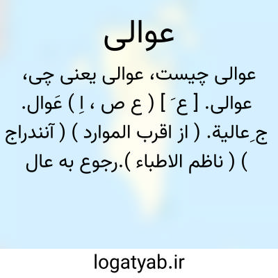 ( صفت اسم ) جمع عالیه بلند از هر چیز. دههاست بر سواد مدینه ضیعه ایست در چهار میلی مدینه و گویند در سه میلی