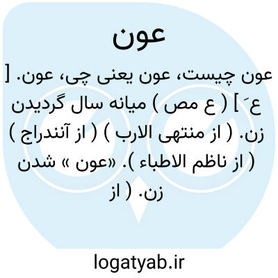 عون. [ ع َ ] ( ع مص ) میانه سال گردیدن زن. ( از منتهی الارب ) ( از آنندراج ) ( از ناظم الاطباء ). «عون » شدن زن. ( از اقرب الموارد ). || ( اِمص ) یاری و مددکاری. ( غیاث اللغات ). مددکاری و دستگیری و حمایت و اعانت. ( ناظم الاطباء ):